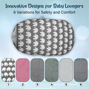 Our Baby lounger cover all-around bumper is made with plenty of pure cotton filling on the edges to mimic the mother’s womb for comfort. It has a high-density elastic sponge mattress at the bottom that doesn't twist inside the fabric to secure your newborn in place. With the framed structure, strong seams & durable zipper, you can easily wash.